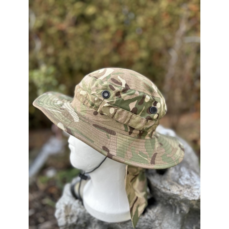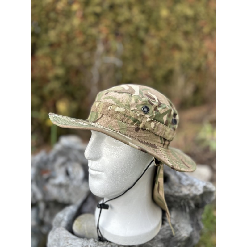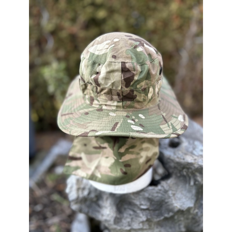Вентиляционные отверстия, ячейки для крепления растительного камуфляжа. Широкополые поля не закрывают обзор и не мешают при стрельбе.