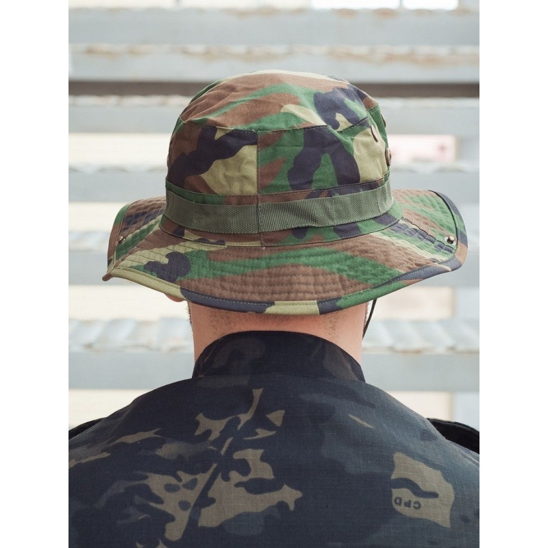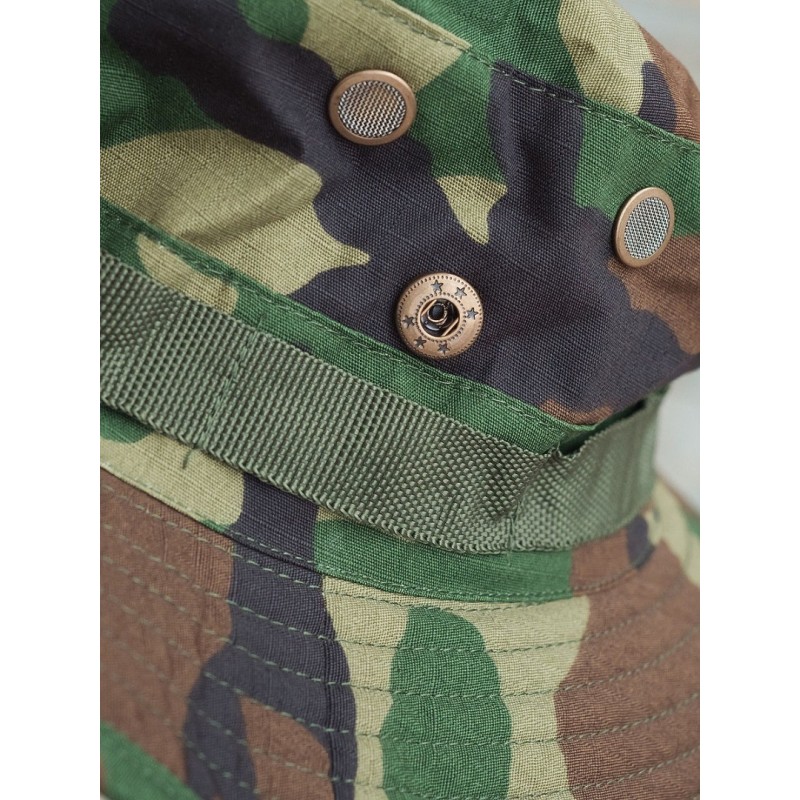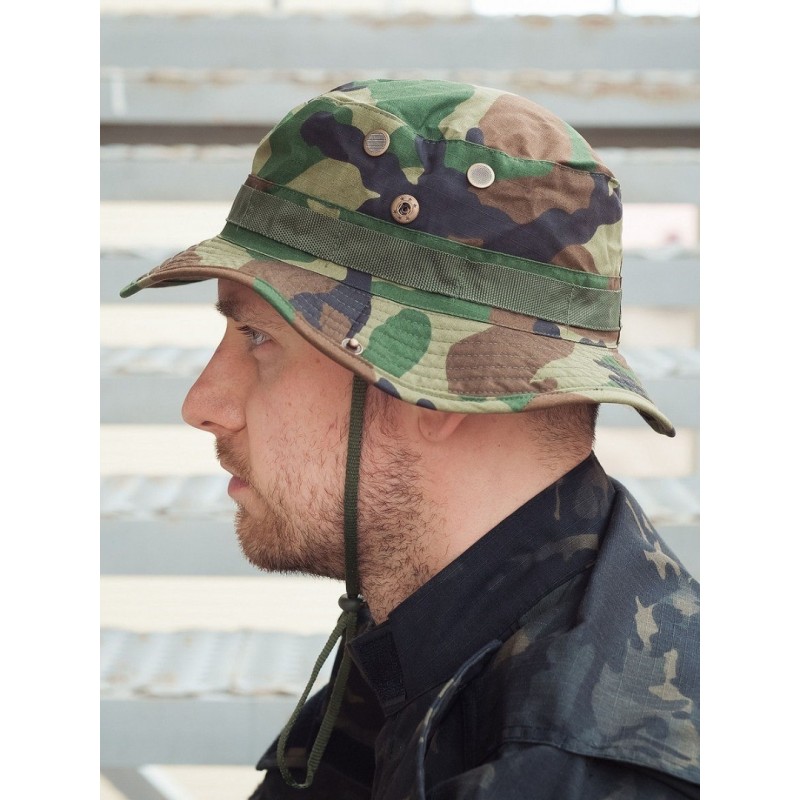 Реплика. Панама US GI - идеальная защита головы в жаркие солнечные дни. У него широкие волнистые поля шириной около 8 см. их можно поднять с помощью ремня для подбородка или кнопок на полях. Петли по периметру служат в качестве удерживающего устройства и для крепления камуфляжа или мелких предметов. Boonie также имеет решетчатые вентиляционные отверстия.