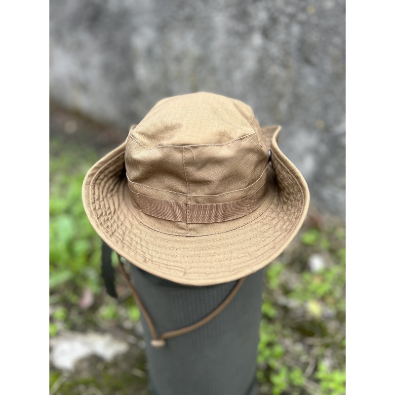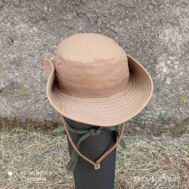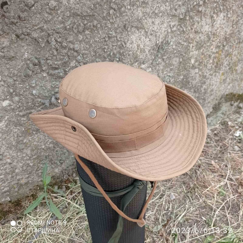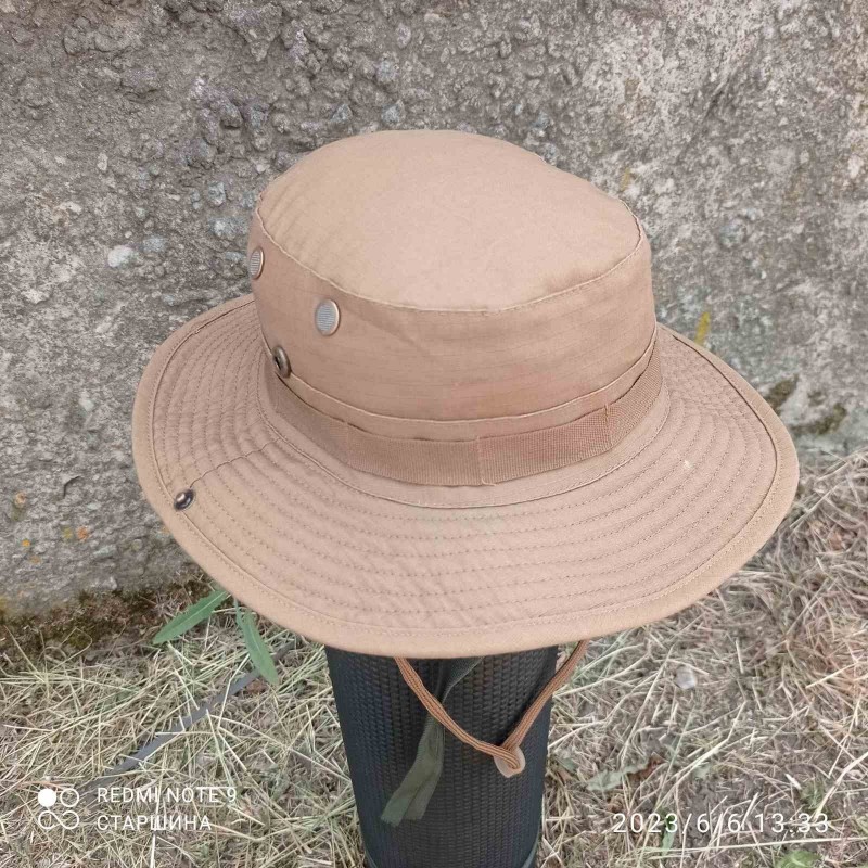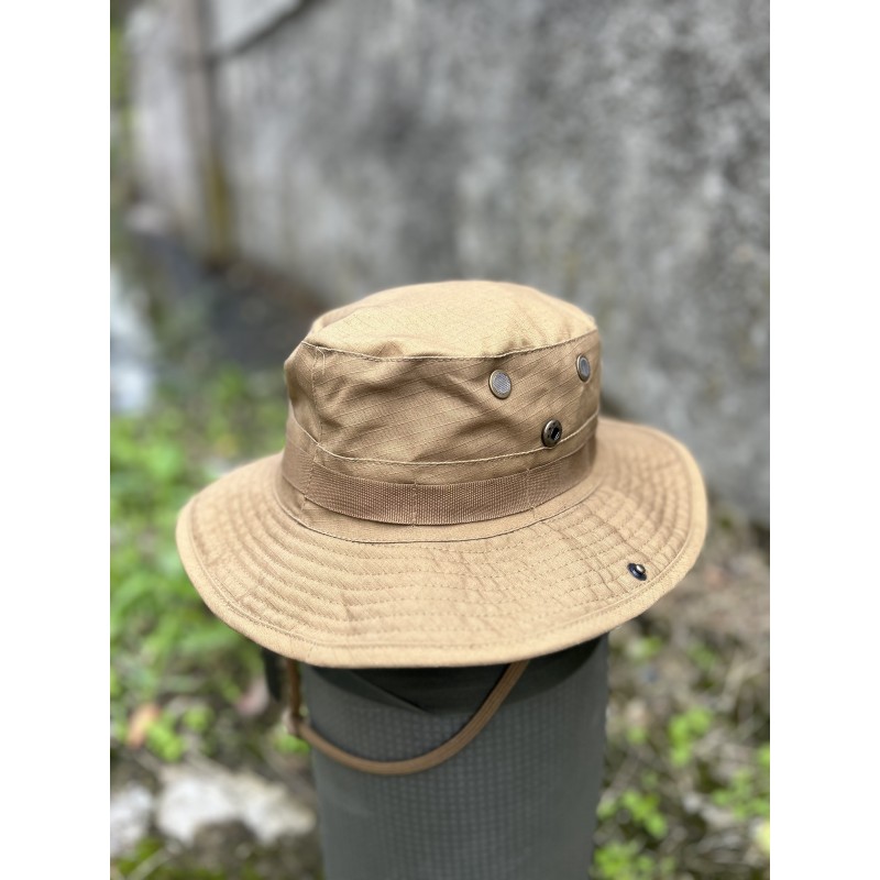 Реплика. Панама US GI - идеальная защита головы в жаркие солнечные дни. У него широкие волнистые поля шириной около 8 см. их можно поднять с помощью ремня для подбородка или кнопок на полях. Петли по периметру служат в качестве удерживающего устройства и для крепления камуфляжа или мелких предметов. Boonie также имеет решетчатые вентиляционные отверстия.