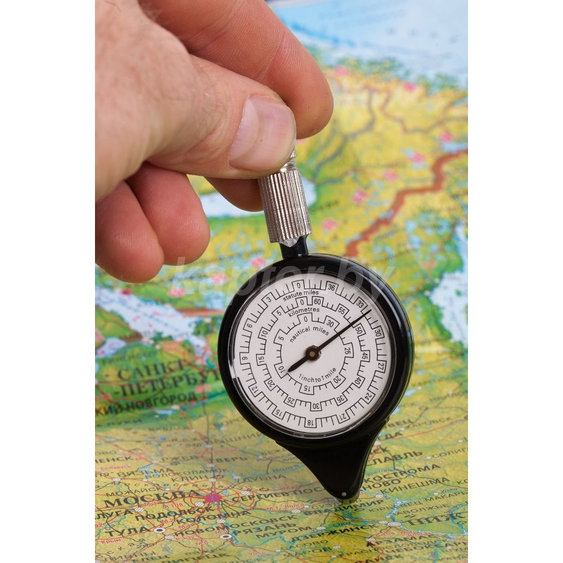 Измерительный курвиметр нужен для тех случаев, когда замерить расстояние по прямой невозможно. Прибор проводят по извилистой линии маршрута, замеряют ее длину, а полученную величину переводят в единицы расстояния с учетом топографического масштаба.