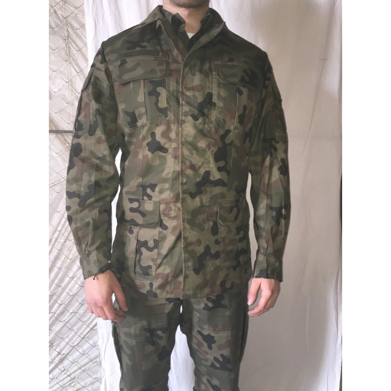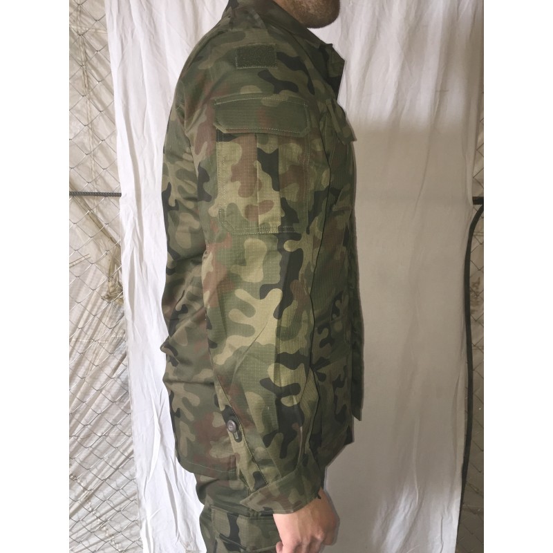 Китель тропический. По маркировке - wz.124Z/MON. Пошит из ткани US-21 ("рип-стоп"). Очень легкий и тонкий. Китель можно носить в течение целого года, при этом в зимнее время под него одевается термобелье. Имеет классический покрой рубашки с воротником и застегивается на пять пуговиц, четыре из них потайные (благодаря этому в застегнутом состоянии их не видно), а одна (самая верхняя) редко используется и служит для застегивания кителя под самый ворот в ветреную погоду. На плечах размещены погоны, на которые одеваются погоны-муфты с воинскими знаками различия. Рукава длинные и удобные, заканчиваются застегивающимися на пуговицы манжетами. Легко закатываются. На кителе размещаются шесть карманов. Четыре из них располагаются на груди, по два с каждой стороны, один над другим и два на рукавах. Также есть внутренние карманы. Под мышками находятся по восемь отверстий для вентиляции. На рукавах, над карманами липучка для государственные флажки Польской Республики. Также есть липучки над верхним правым нагрудным карманом для ношения нашивки с фамилией и на левом нарукавном кармане для ношения эмблемы подразделения.