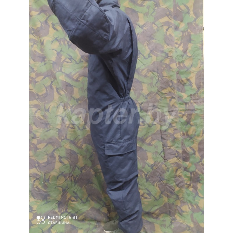 Комбинезон окрашен в неброский темно-синий цвет.