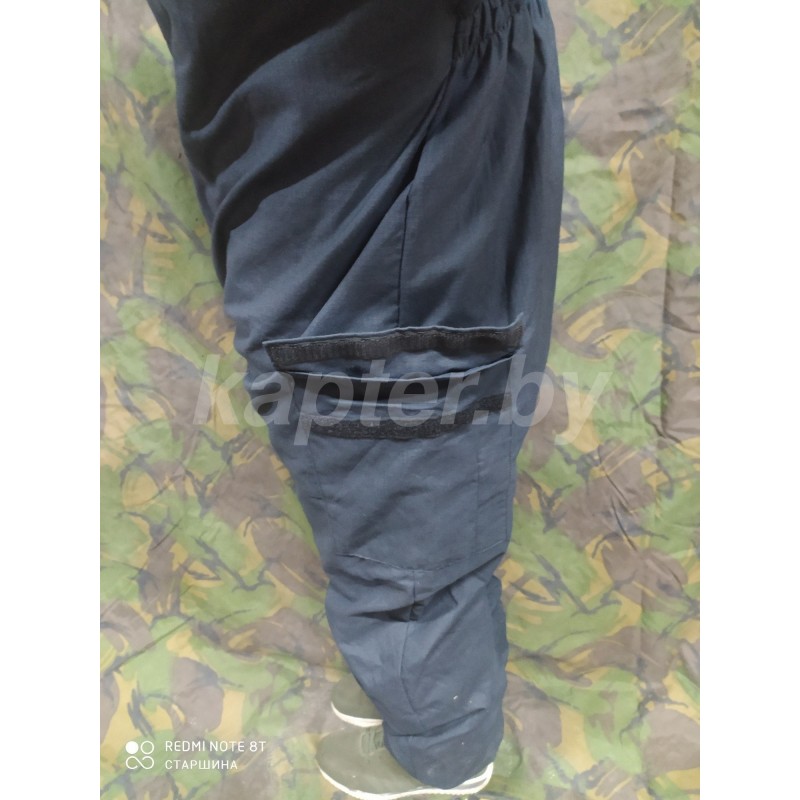 Комбинезон снабжен двумя карманами, закрытыми клапанами на липучках, карманы расположены на бедрах.