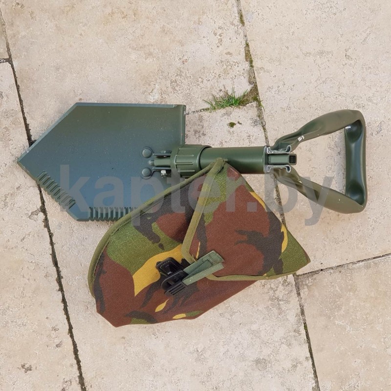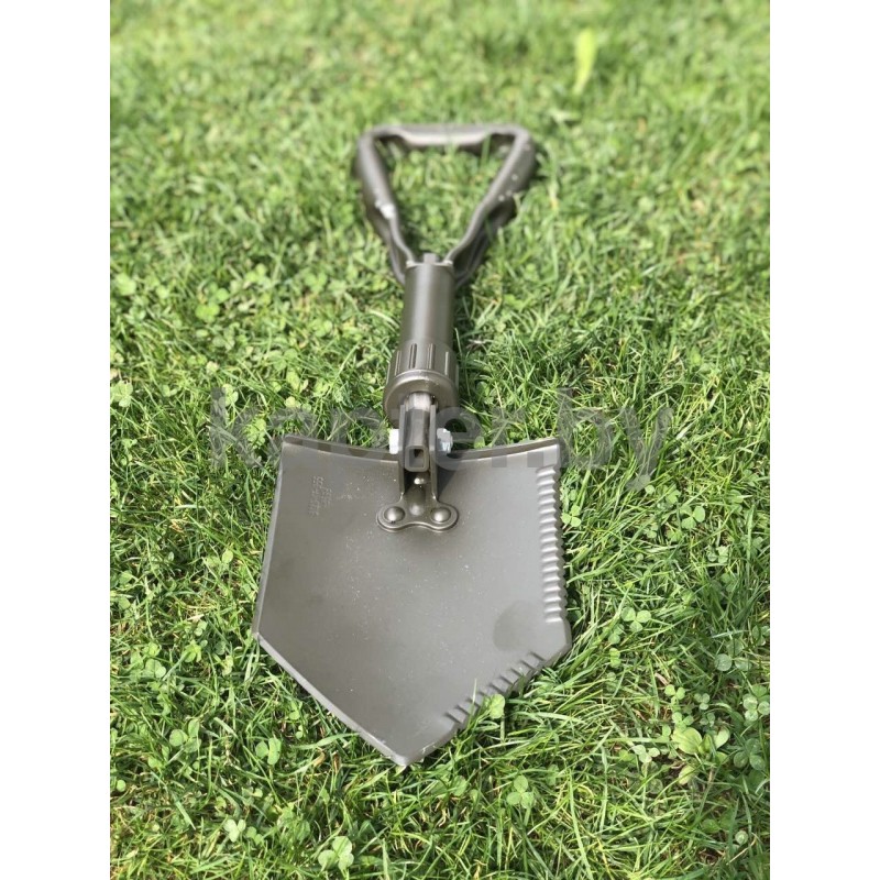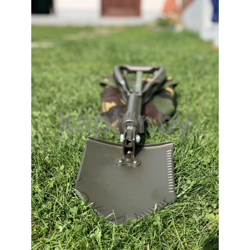 Складная армейская лопатка, изготовленная из прочной нержавеющей стали.