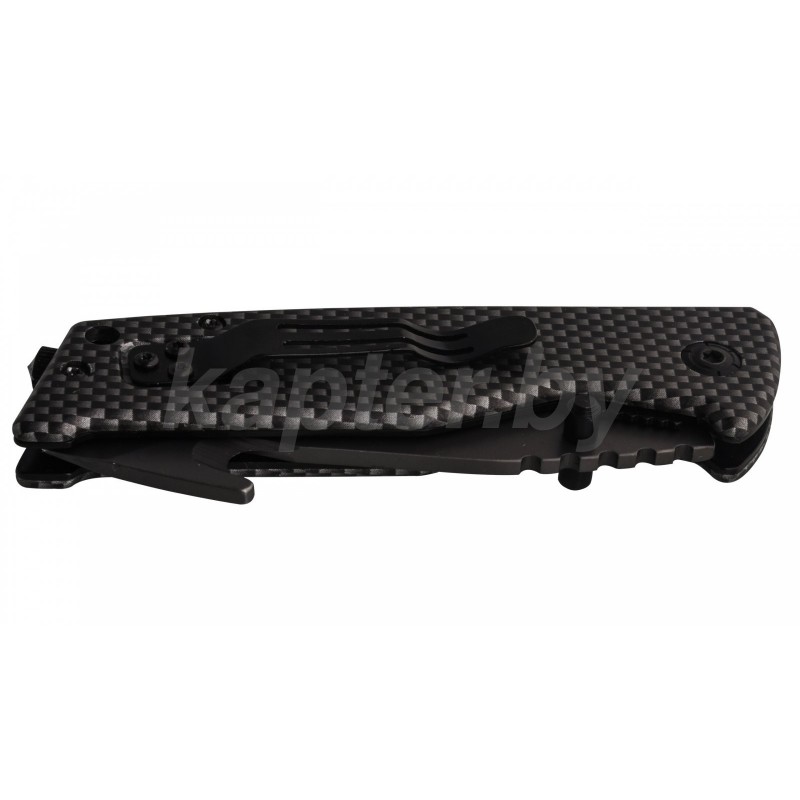 Складной тактический нож с автоматическим раскрытием, титановое покрытие, рукоять со стеклобоем, клинок со специальным лезвием для веревок, клипса для крепления.