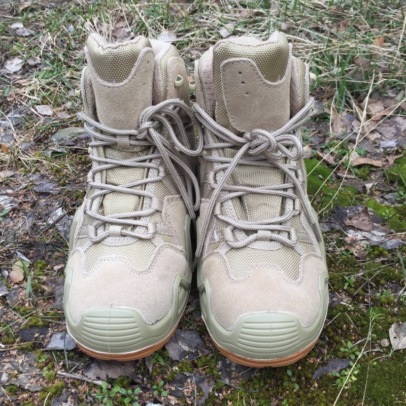 Свежий, выдающийся, агрессивный дизайн сразу выделяет данную модель из ряда военной и туристической обуви и надолго западает в память. Современные материалы, используемые в данной модели, сделают носку максимально удобной. Специальное анатомическое строение подошвы заставит полюбить их с первой примерки, так как делает ботинок комфортным и даёт ощущение, что модель прямо сделана специально для вас.