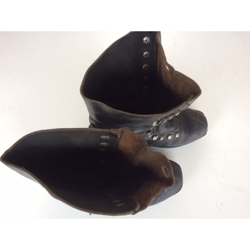 Поздние тяжелые австрийские ботинки оснащены внутри прослойкой амортизирующего материала (поролона), обтянутого качественной перчаточной кожей желтого цвета. Язычок - композитный, по центру идет "подушка" амортизирующей прослойки, по бокам - просто кожаные мягкие вставки для регулирования ширины шнуровки.