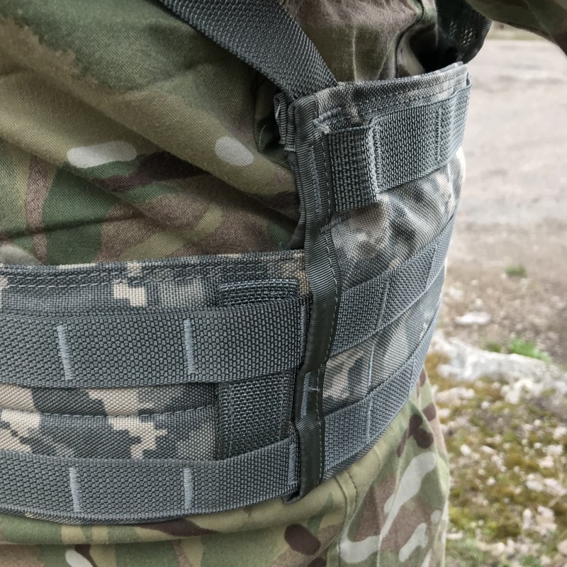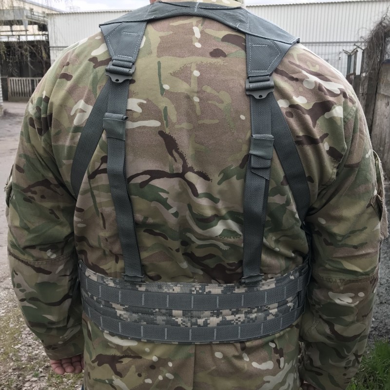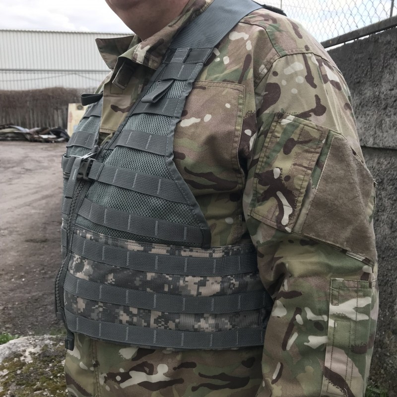 Изготовлен из кордуры, Molle интерфейс размещен на баллистической сетке и по периметру разгрузки. Жилет уникален своими эргономическими свойствами и системой регулировок, может применяться со всеми типами бронежилетов и верхней oдежды. Размер единый (регулировка проводиться за счет лямок и боковых строп).