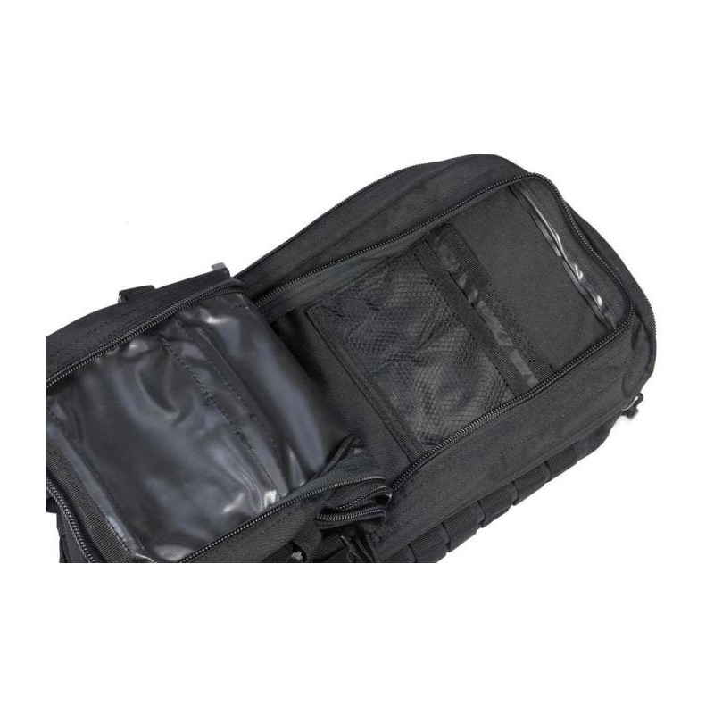 Данная модель тактического штурмового рюкзака состоит из двух больших отделений с застежками-молниями с различными сетчатыми внутренними карманами, двух маленьких передних карманов, а также встроенного кармана на липучке для гидросистемы.