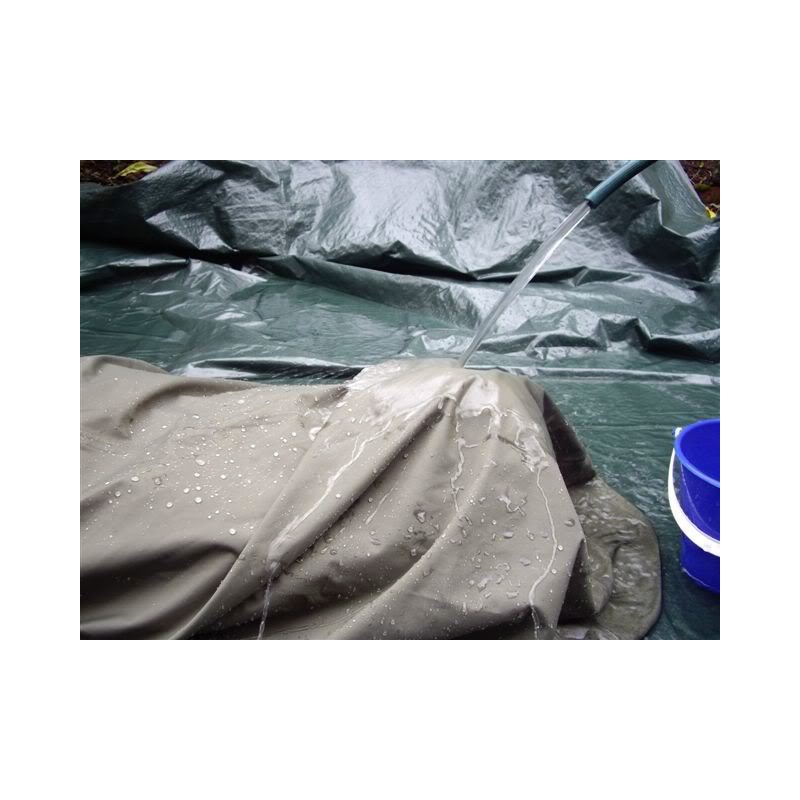 Этот мешок сделан из непромокаемого материала Gore-Tex, что позволит вам не бояться спать в мешке на открытом воздухе прямо на земле. Он не пропускет воду, но при этом "дышит" и выводит влагу. Все швы проклеены. Чехол расстегивается до середины и имеет широкий клапан закрывающийся для полной водонепроницаемости.
