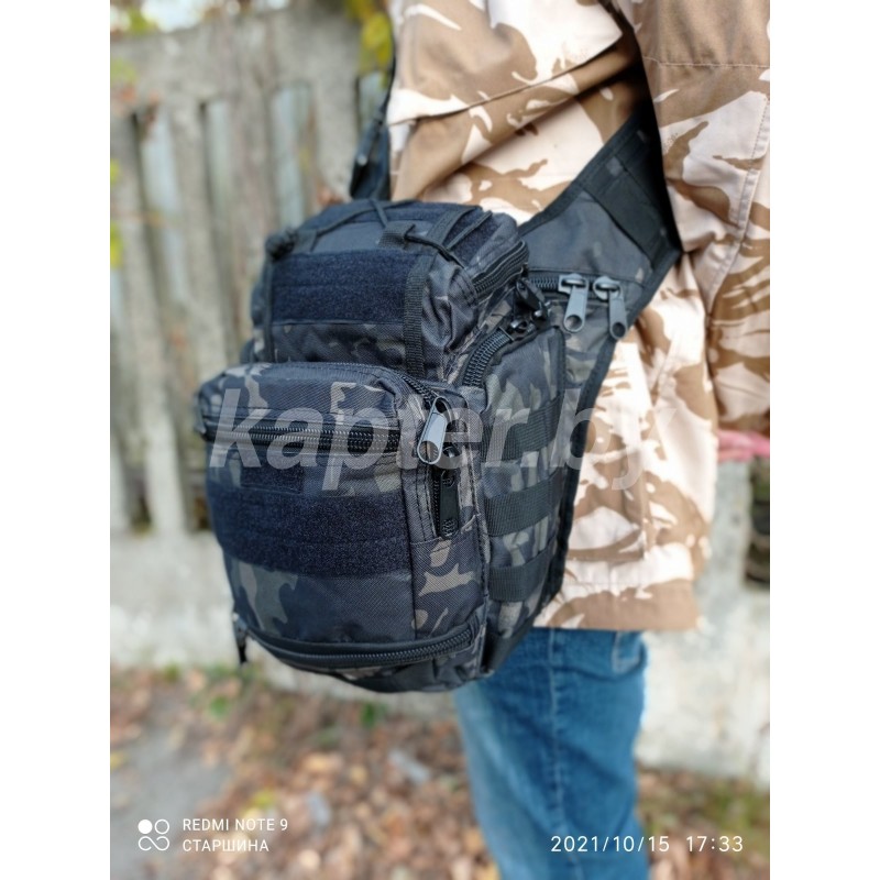 Многоцелевая поясная тактическая сумка. Multicam Black.